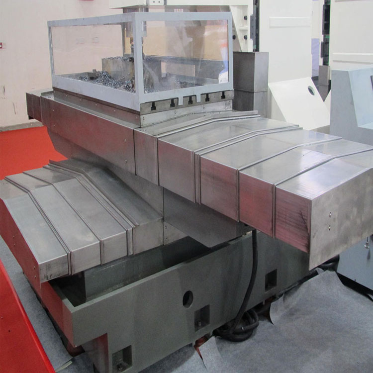 根據運行速度及導軌的不同我們所研制的防護罩結構也不同。運行速度10m/min之下的我們裝有聚安脂或黃銅滑塊。中等速度30m/min之下的我們裝有滾軸。另外驅動板、刮屑板及吸屑板之間還需要用緩沖系統。滑塊緩沖系統的目的是減少碰撞、噪音及摩擦。